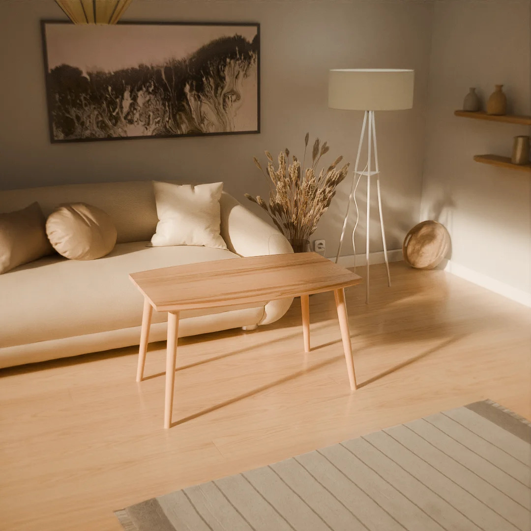 • Styl Skandynawski i Hygge: Tu królują jasne gatunki drewna (jasny dąb, buk). Surowy stolik dodaje wnętrzu przytulności i podkreśla związek z naturą.